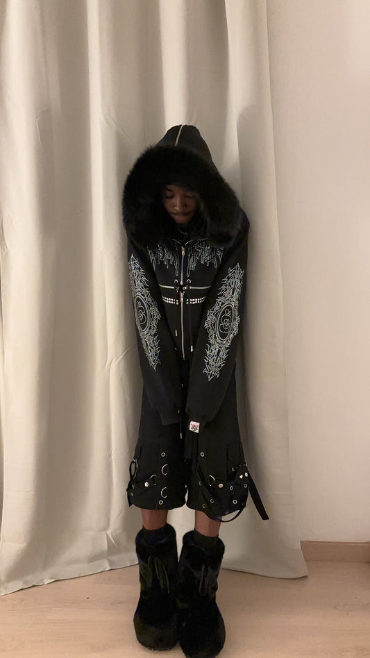 Sold outTRIBAL SYMBOL CROSS-ZIPPER HOODIE