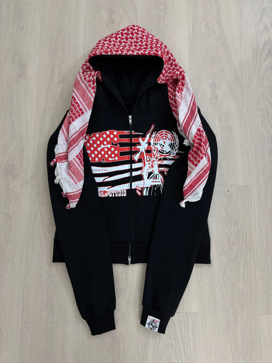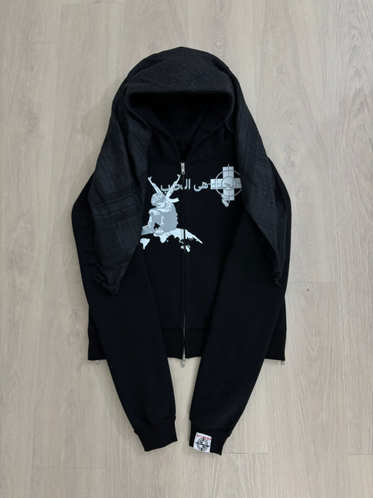 ARABIC (LIFE IS WAR) BLACK TURBAN SCARF ZIPPER