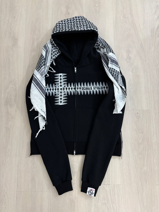 ARABIC (LIFE IS WAR) BLACK TURBAN SCARF ZIPPER
