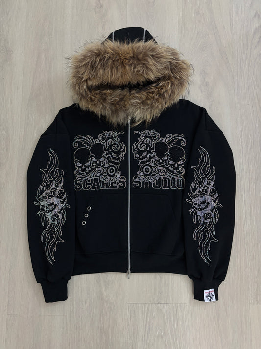 MULTI-SHADE STONE BLACK FUR ZIPPER
