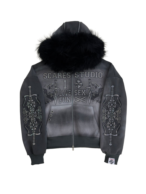 FACES OF FEELINGS SPRAY-WASH ASH GREY FUR ZIPPER